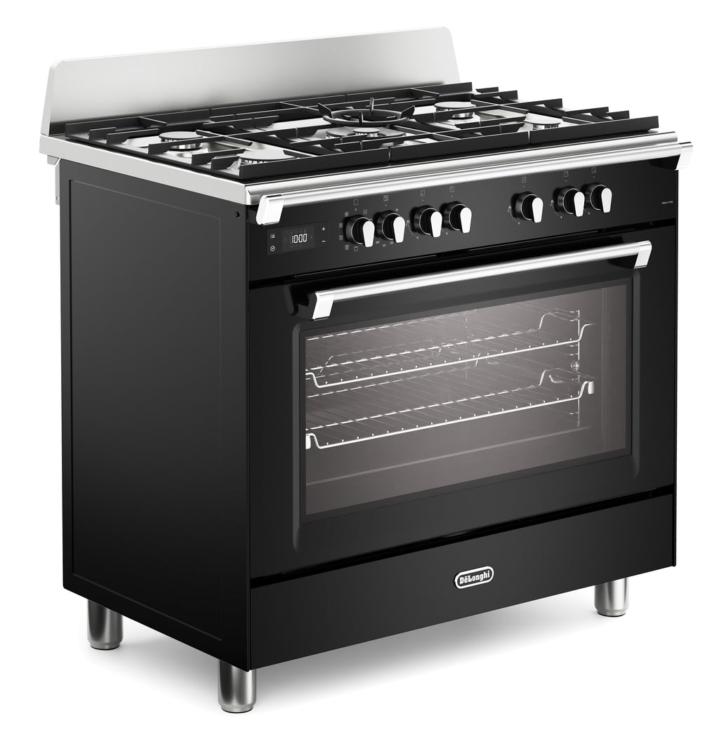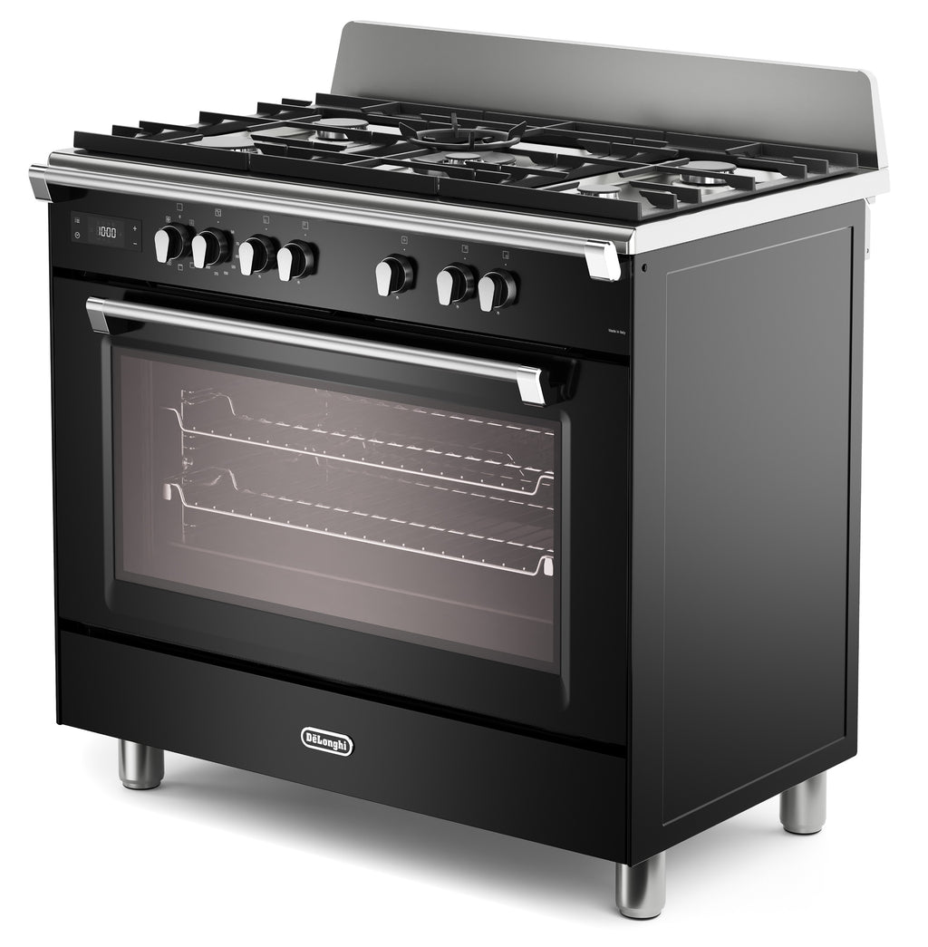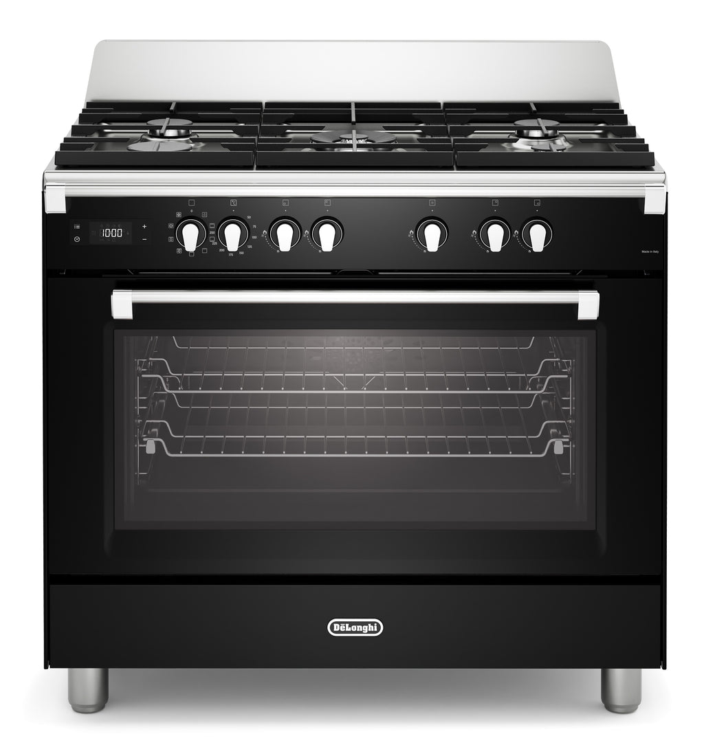 DeLonghi BS 965 MXN 90cm Single Cavity Dual Fuel Range Cooker in Gloss Black