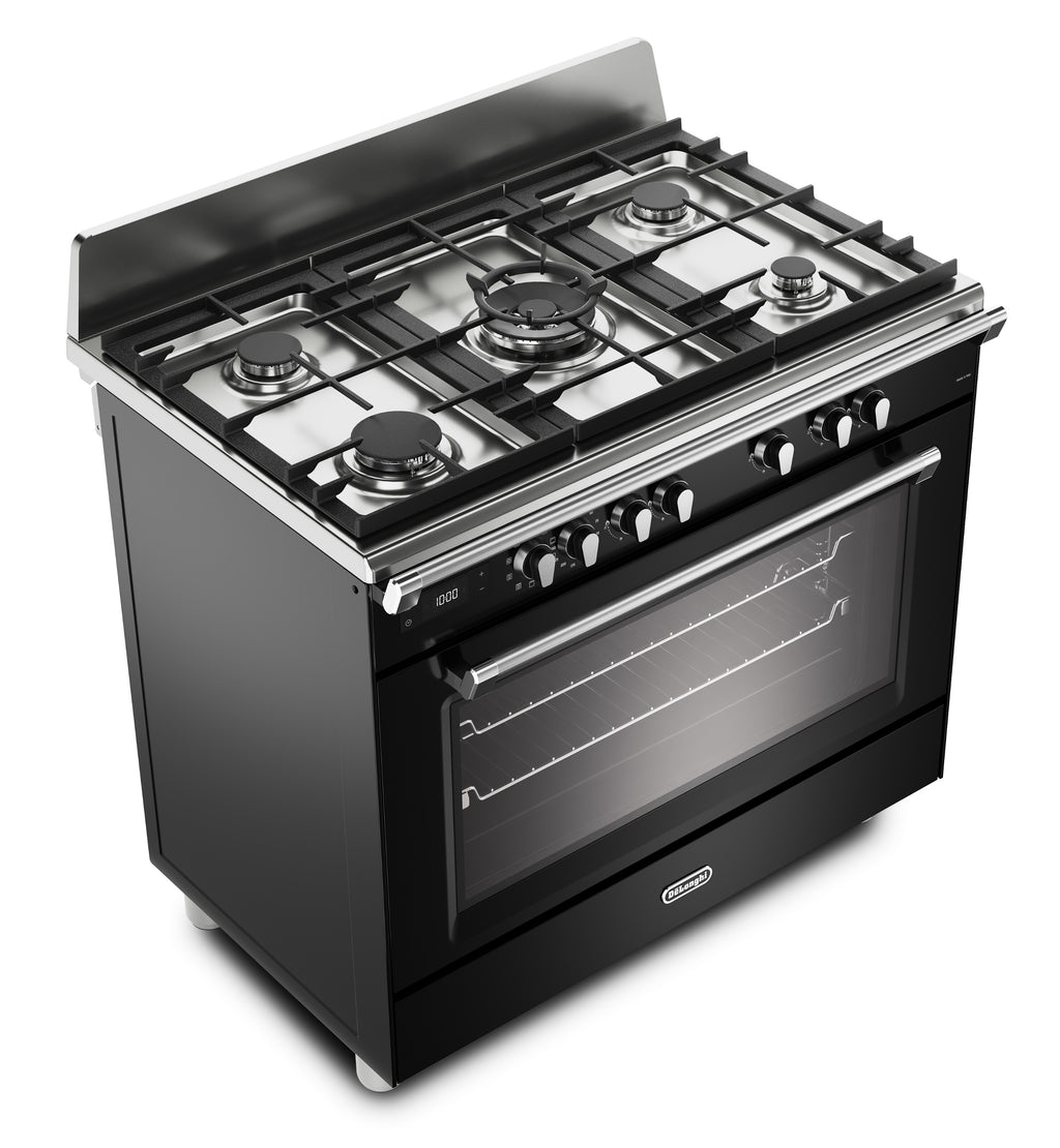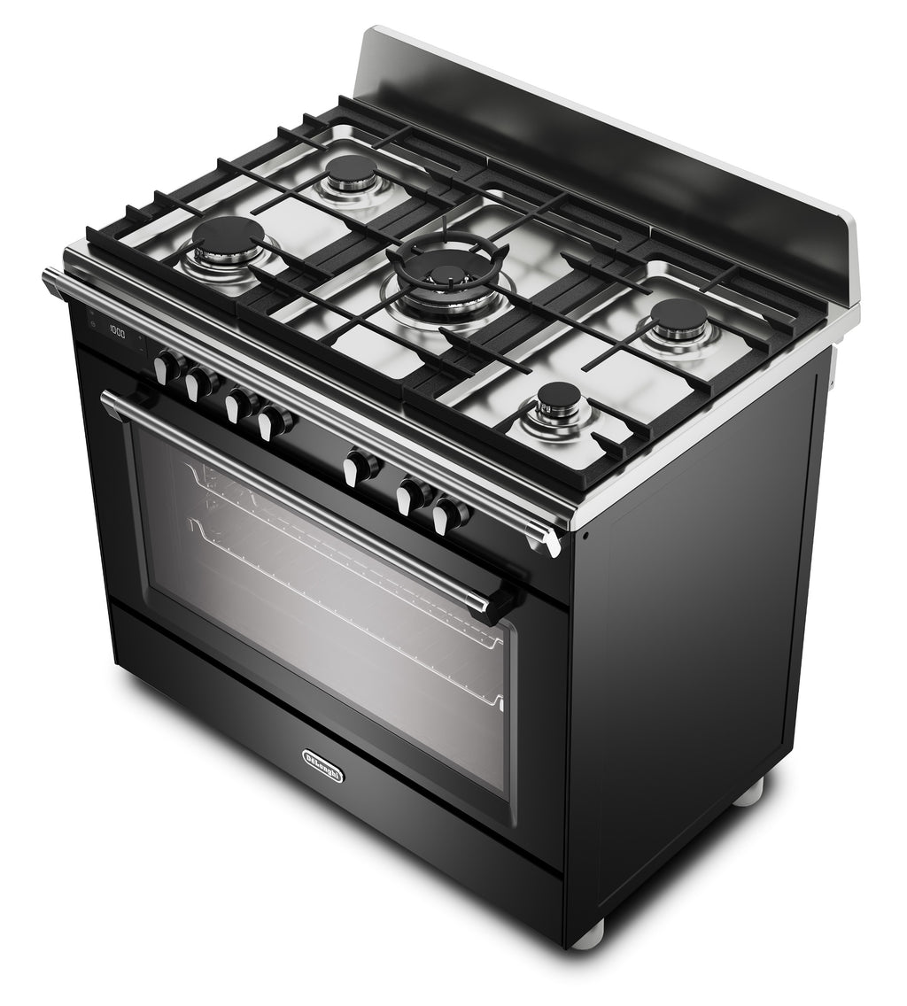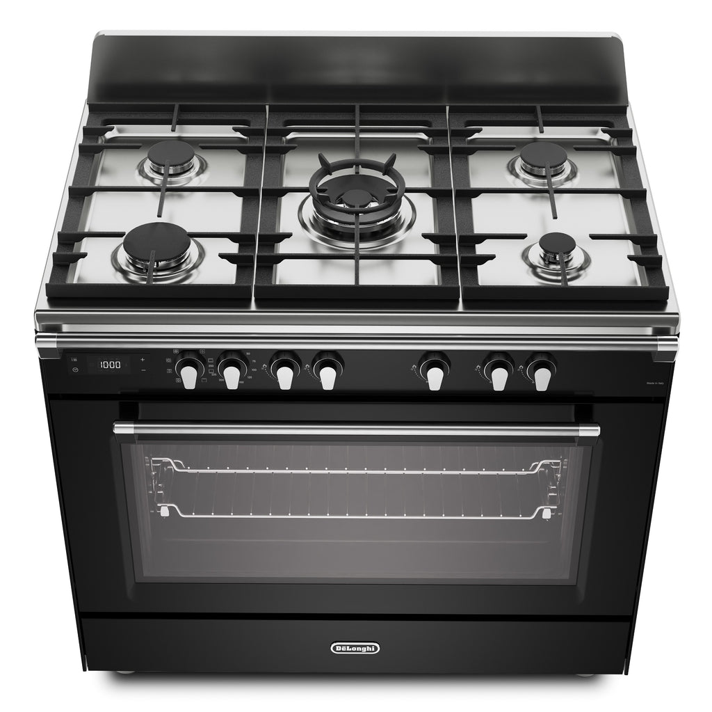 DeLonghi BS 965 MXN 90cm Single Cavity Dual Fuel Range Cooker in Gloss Black