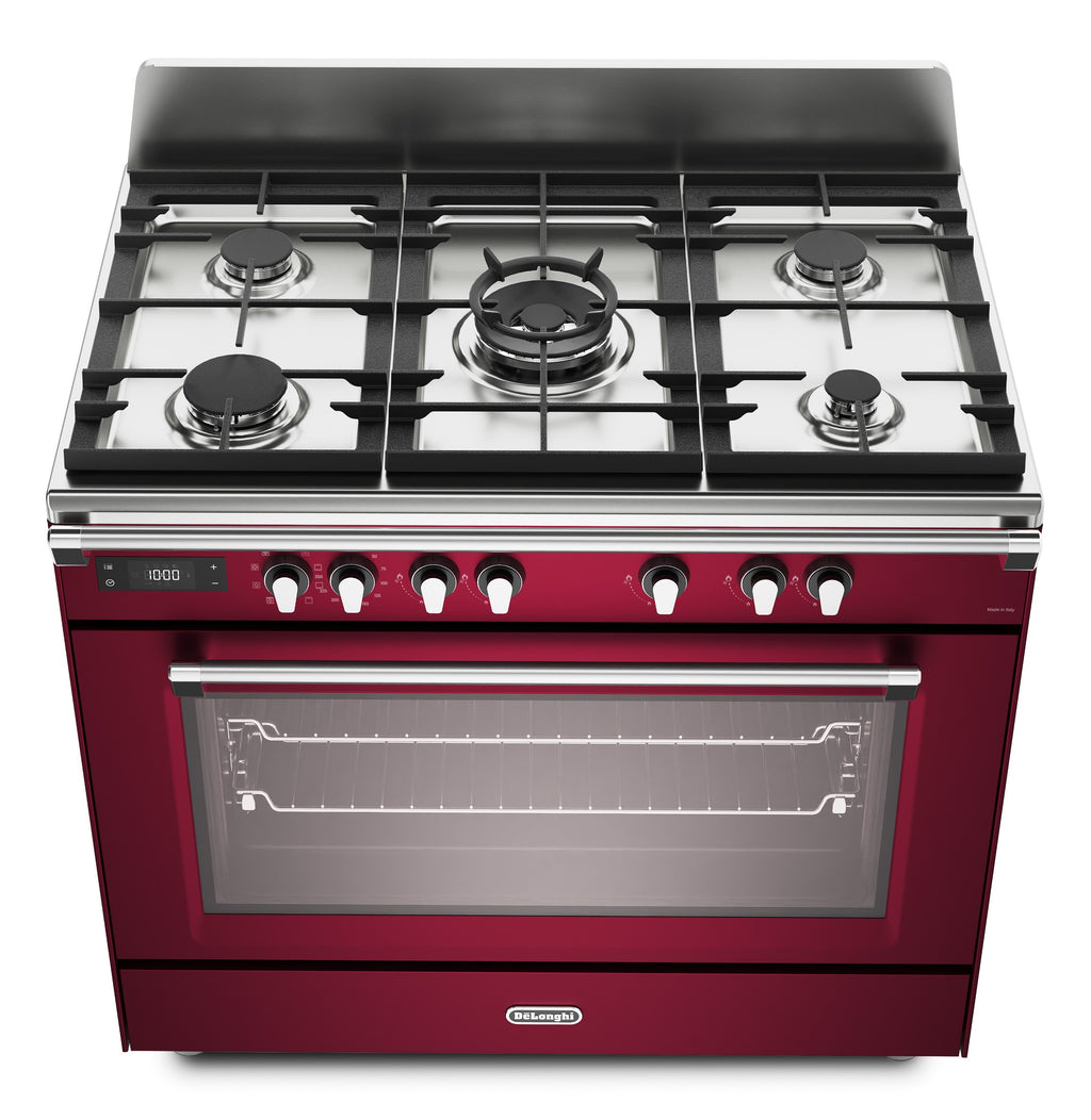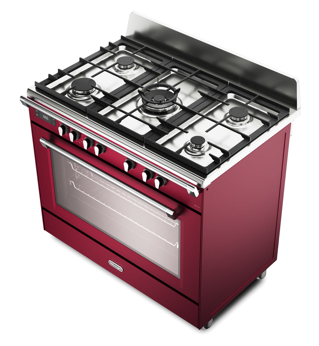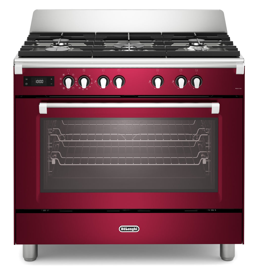 DeLonghi BS 965 MXR 90cm Single Cavity Dual Fuel Range Cooker in Burgundy