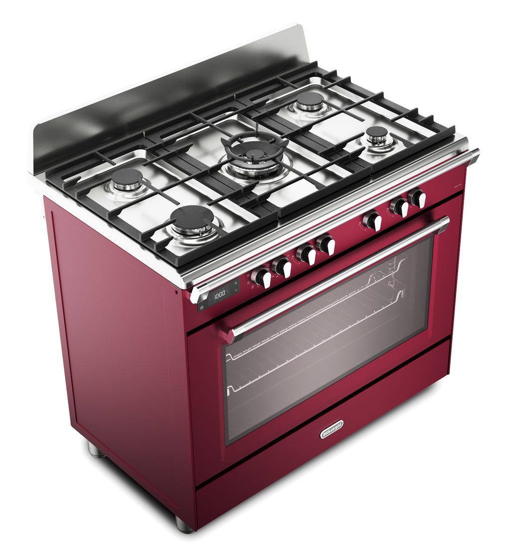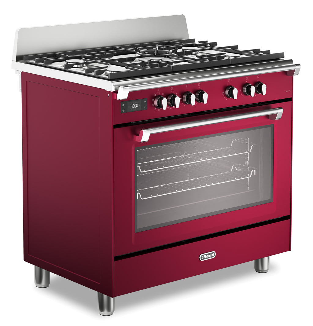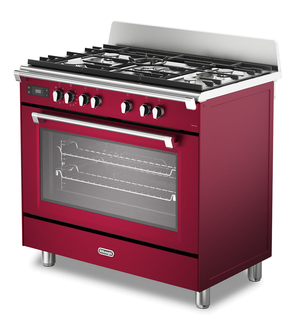 DeLonghi BS 965 MXR 90cm Single Cavity Dual Fuel Range Cooker in Burgundy